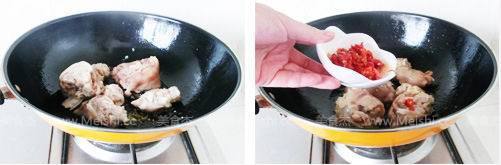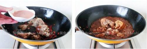 5. 待冰糖溶化后,倒入煮好的猪蹄,不断翻炒上色