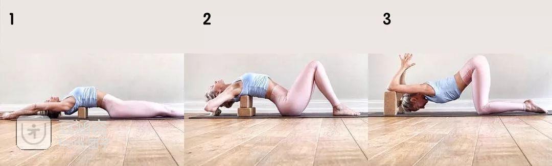 带领胸腔向上打开,在腹部的位置放2块瑜伽砖