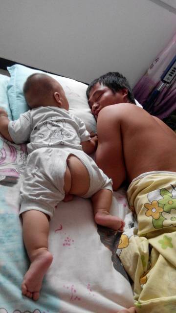 宝宝11岁11个月25天 LV.7宝宝和宝爸趴着睡觉