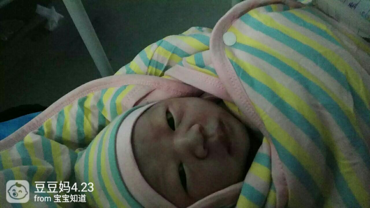 豆妹很淡定预产期4月21号,之前检查就羊水少,医生给开了住院证说到预产期了就得住院,我不想住就回家了,到23号还没动静,一大早老公就把我送到医院,可还是没动静呀!医生说羊水太少,先给打缩宫素试试看,等各种检查做完都中午了,老公公司有事他就走了2点多才开始打针到5点多肚子疼的有点厉害了,产房里6个产妇都有人陪就我是一个人,有点难过,老公说他在回来的路上,来了就进产房陪我,可是豆妹好像不想等爸爸了,6点50医生给我内检说宫口开了5指,赶紧上产床,7点多豆妹就出生了。