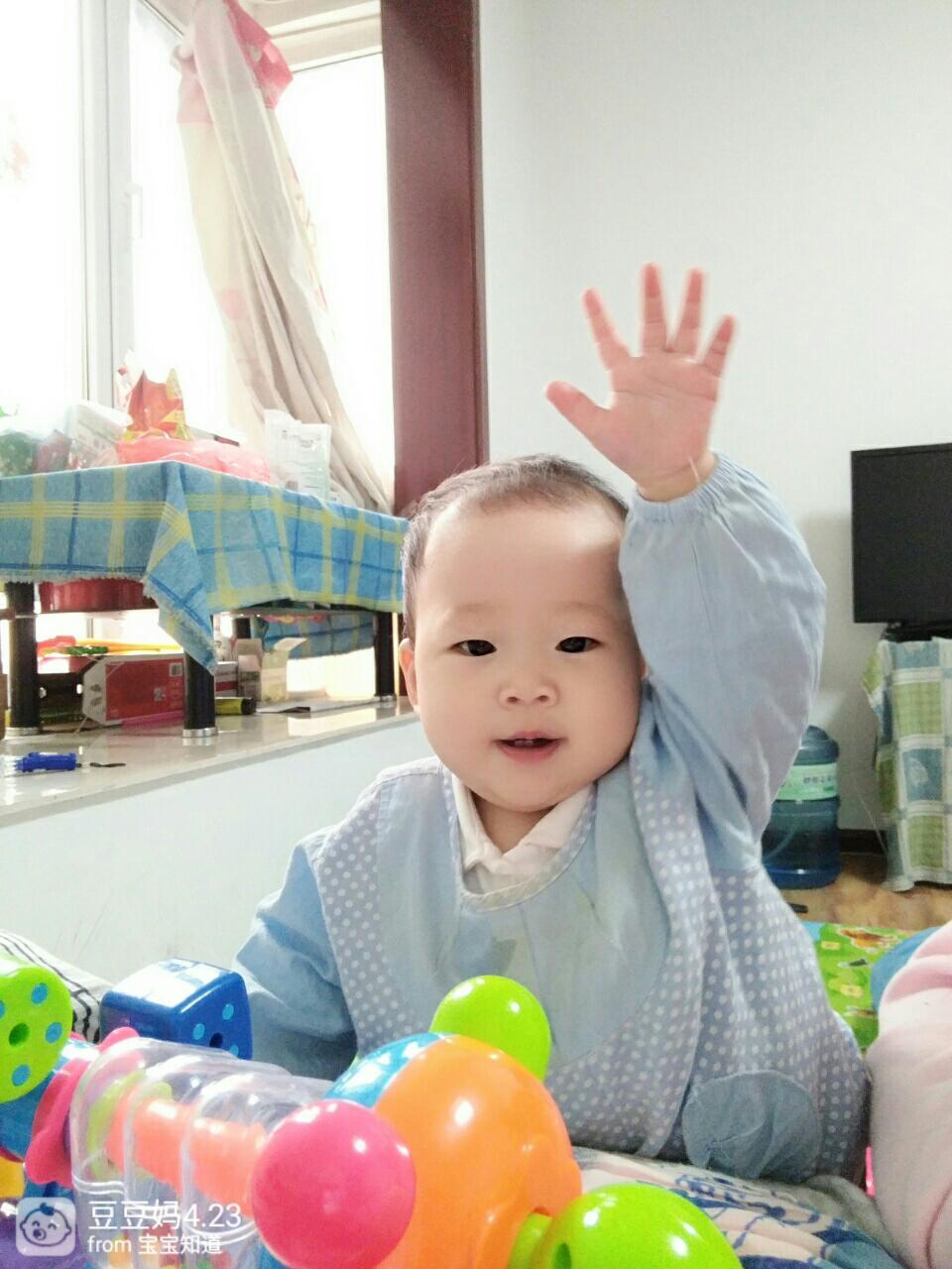 下图是儿子9个月大时,是不是和豆妹很像