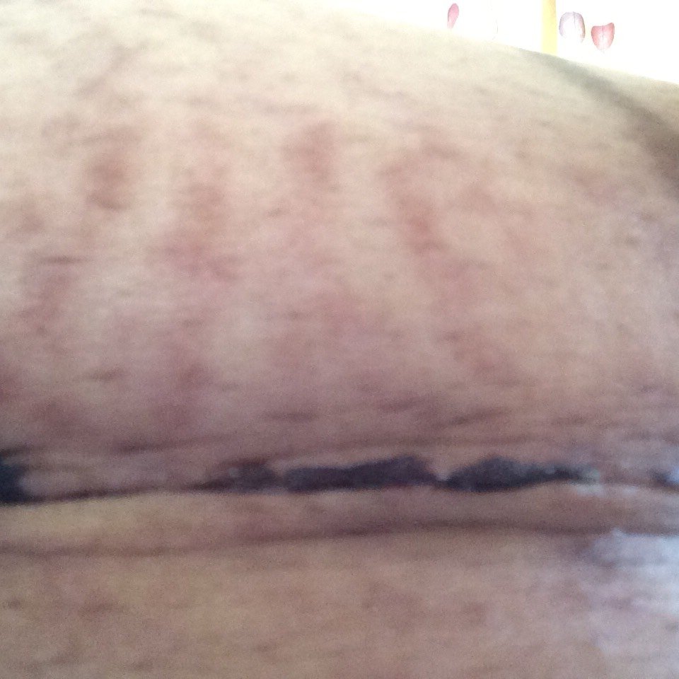 宝宝10岁3个月1天 LV.8好吓人,我的肚子没有纹,很光滑,伤口越来越小了,长的很好