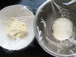 用料2 (油酥和内馅)undefined 油皮材料和油酥材料分别混合均匀,盖保鲜膜静置30分钟