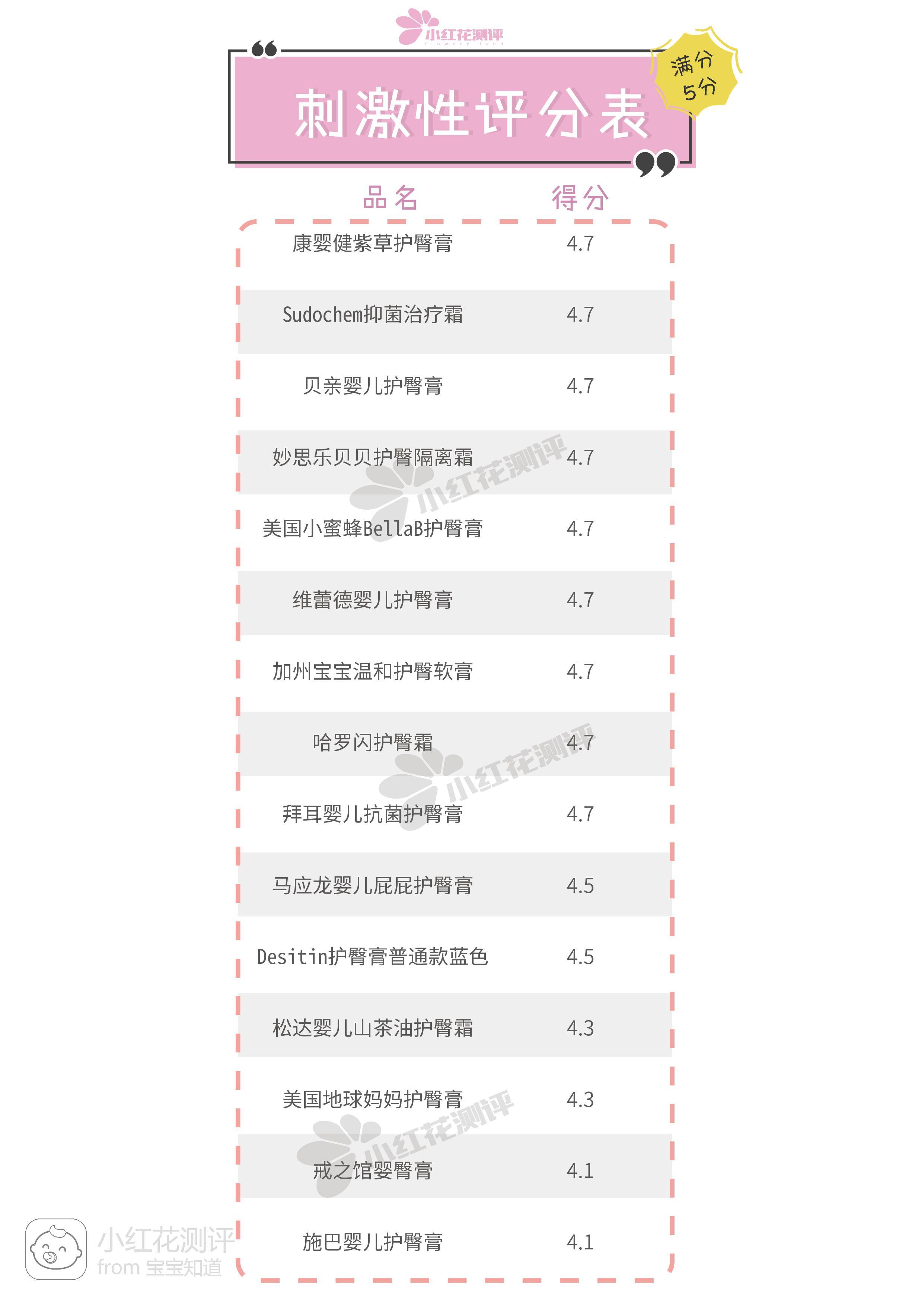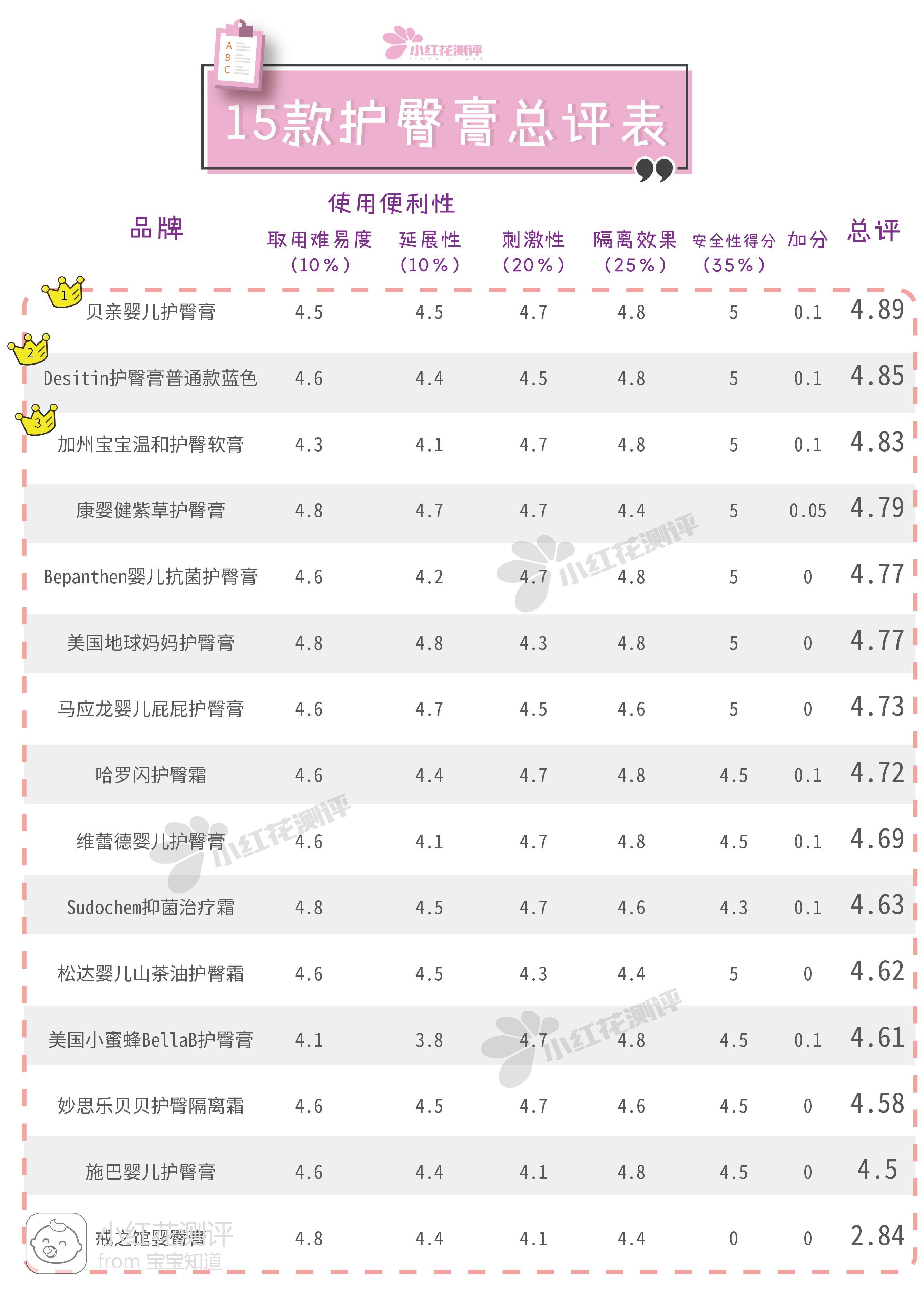 通过以上的测评,“贝亲”、“Desitin”和“加州宝宝”分别名列前三。