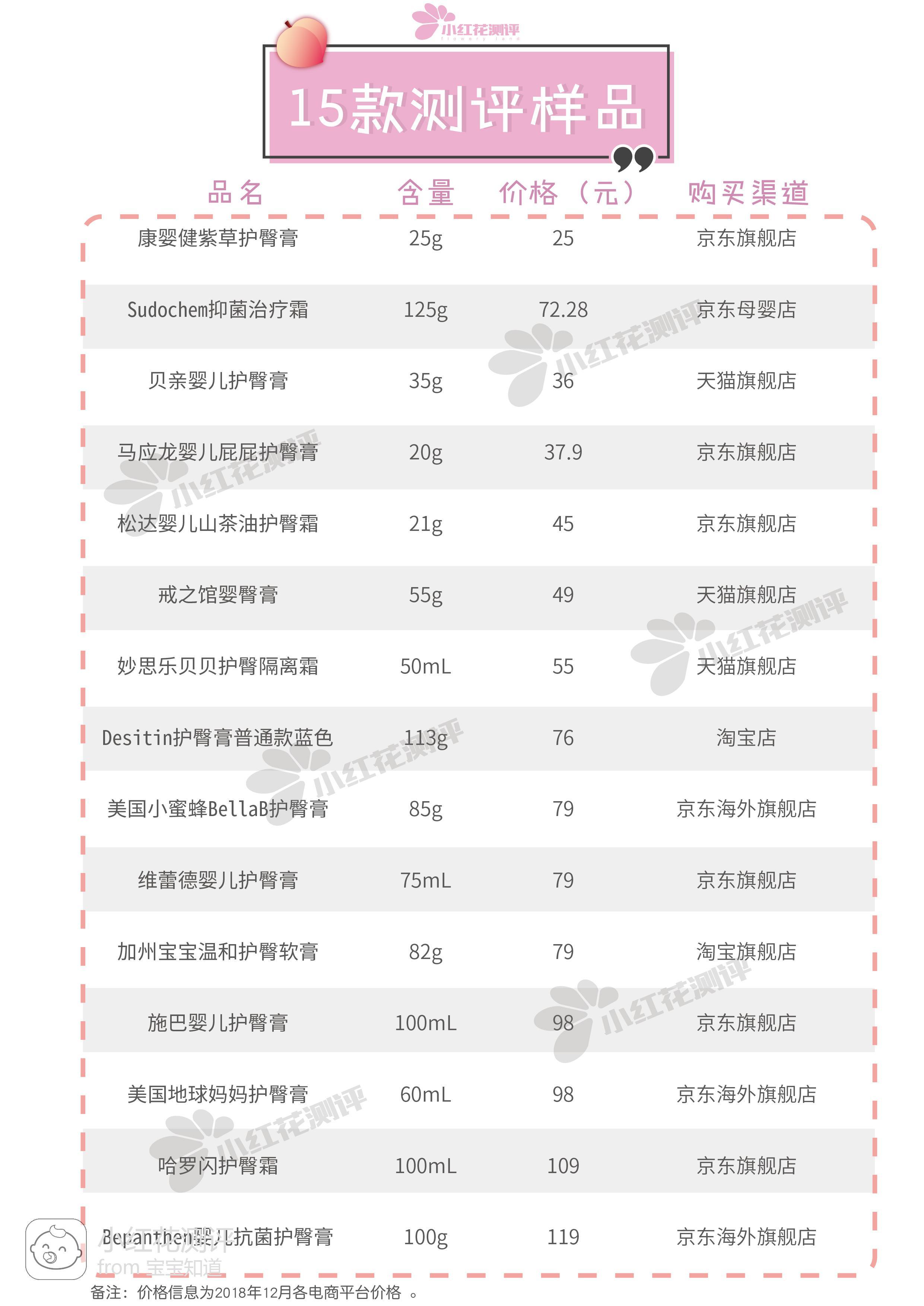 小红花测评根据电商平台销量以及花粉们的意见,选择了15款婴儿护臀霜来进行本次测评。