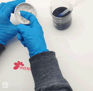 在第一张滤纸上均匀涂抹等量护臀膏,然后滴上配制好的简易人工尿液,观察尿液是否渗入垫在底下的第二张滤纸。