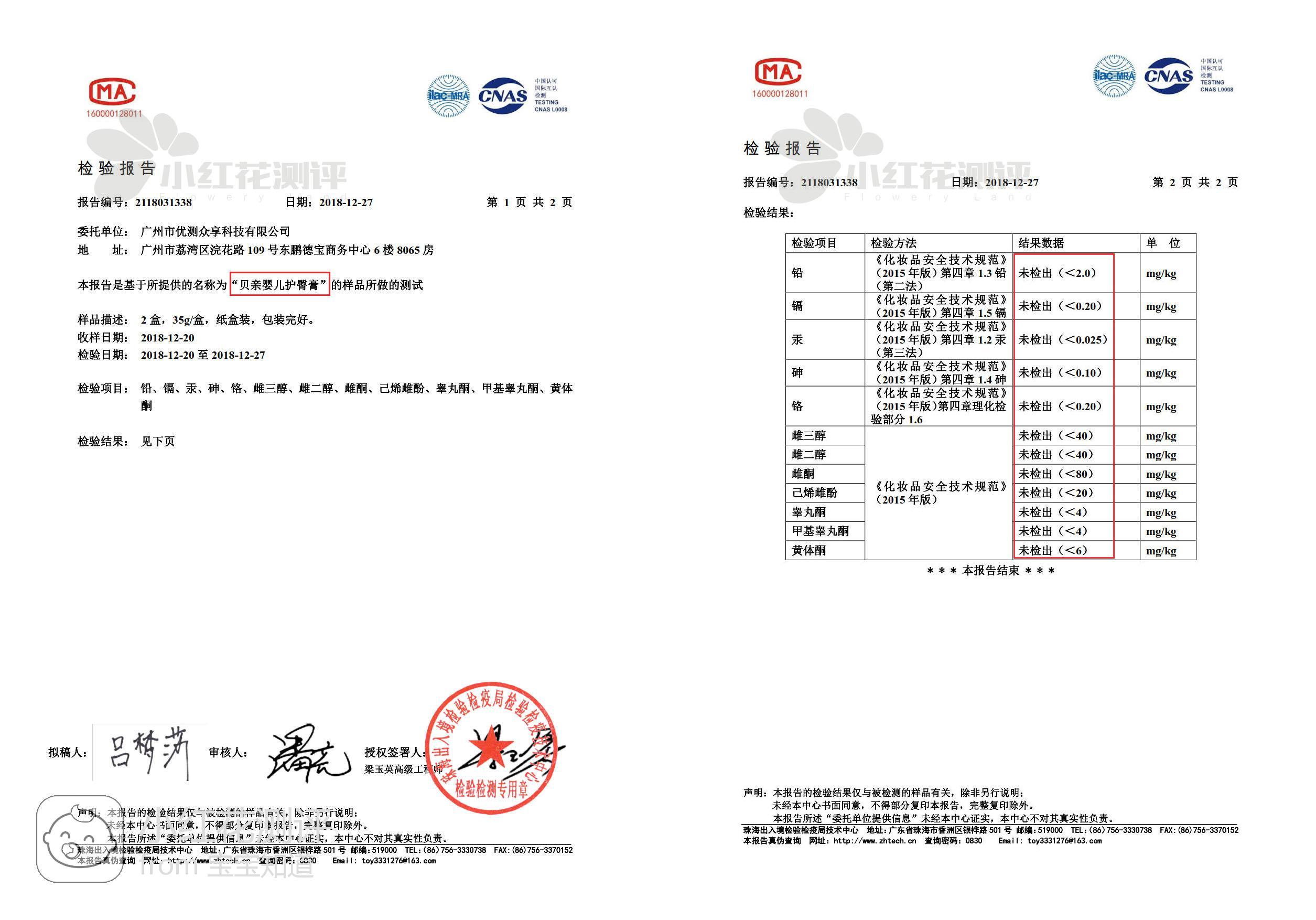 根据实验室的检测结果,送检的三款护臀膏均不含以上重金属和性激素,宝妈们可以放心使用。