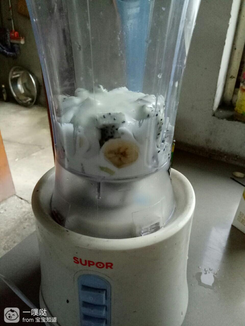 家里有一个火龙果,一颗猕猴桃。火龙果切丁,猕猴桃切一些薄片,剩下的也切丁。除去等下要用的,还有刚刚切片剩下的香蕉,我把这些水果边角料都混在一起,加入酸奶,打成果味酸奶。