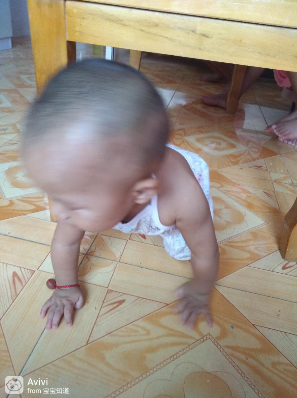 沿着桌子走,我家孩子在10多天前就会了,而他最热衷的还是爬爬爬。