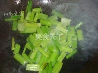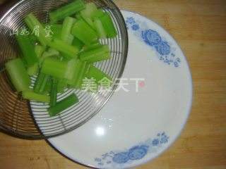 3 捞出芹菜备用。