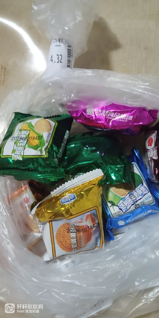 苹果平时一斤至少6.99元,这里航满5元一斤,还是好大的。其实我不喜欢太大,太大的没有小的甜,所以来了就买几个吧。一共买了5个花了14.10元。饼干是达利园的,挺喜欢吃,买了几包4.32元,还是挺便宜的。