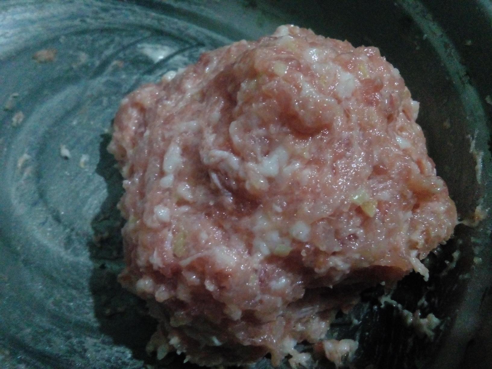 2. 猪肉馅要选用三刺唤分肥七分瘦,姜切末,葱白切末放入猪肉馅中,加入盐、淀粉抓匀