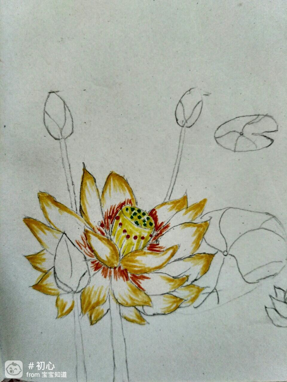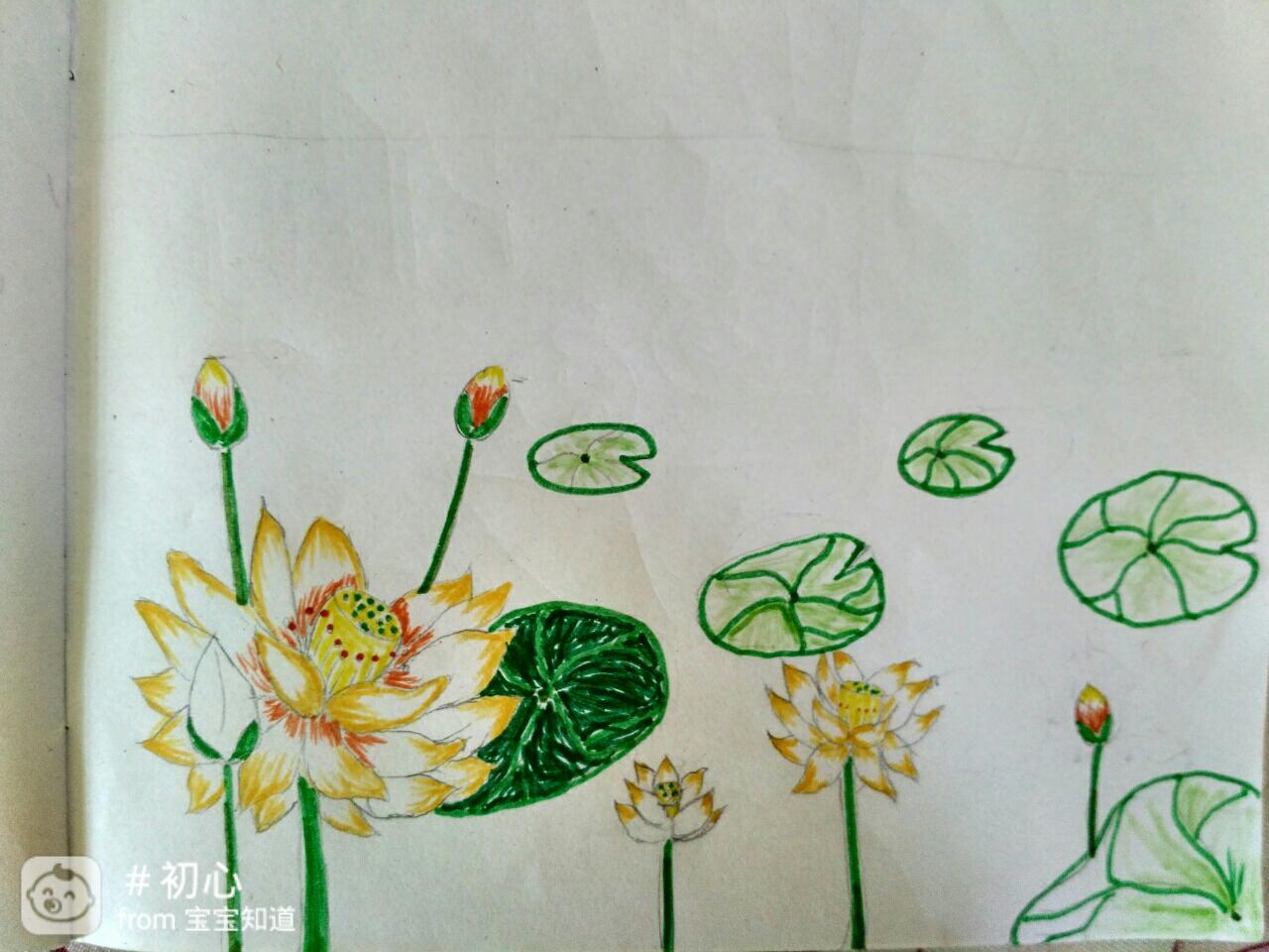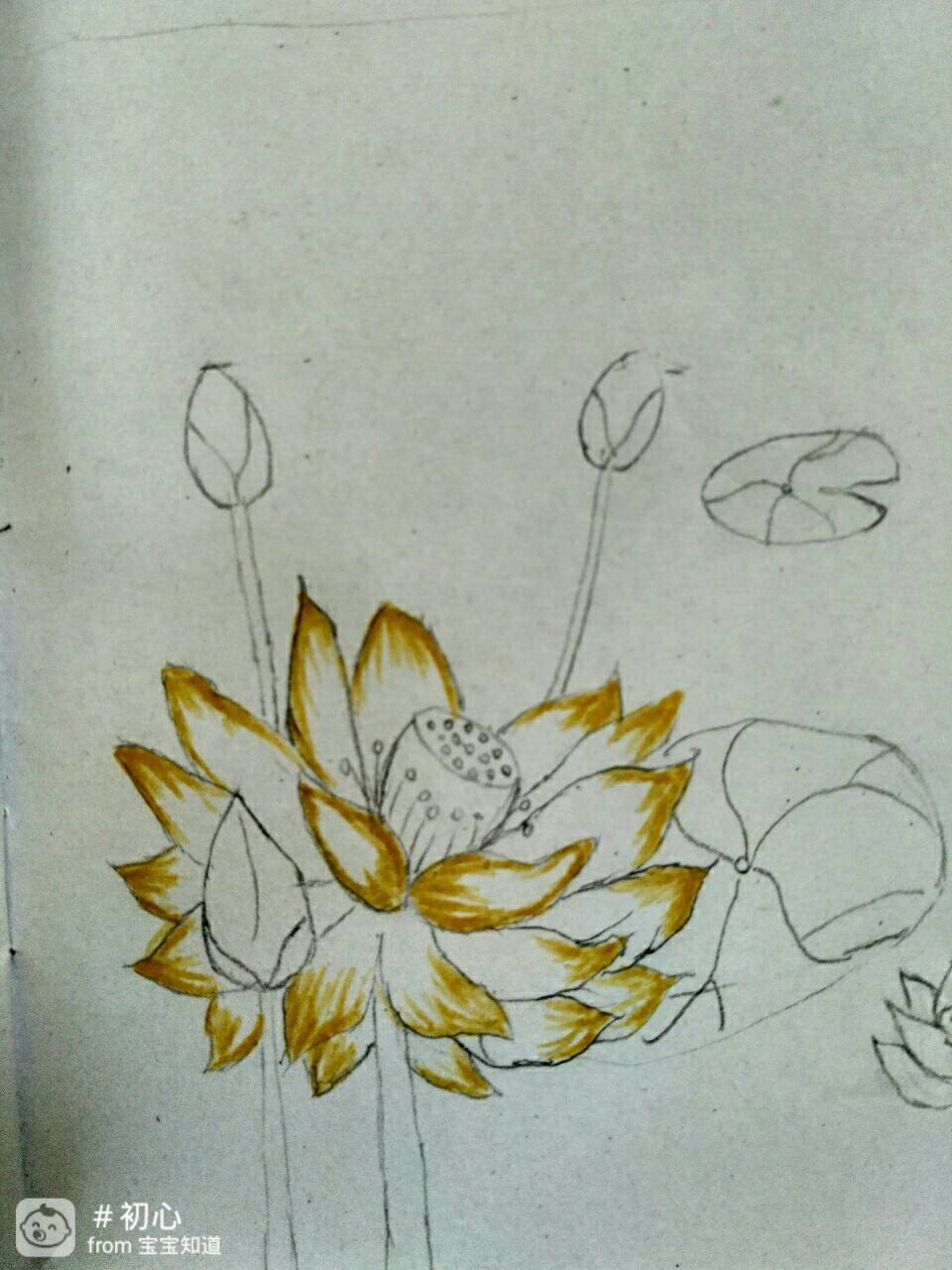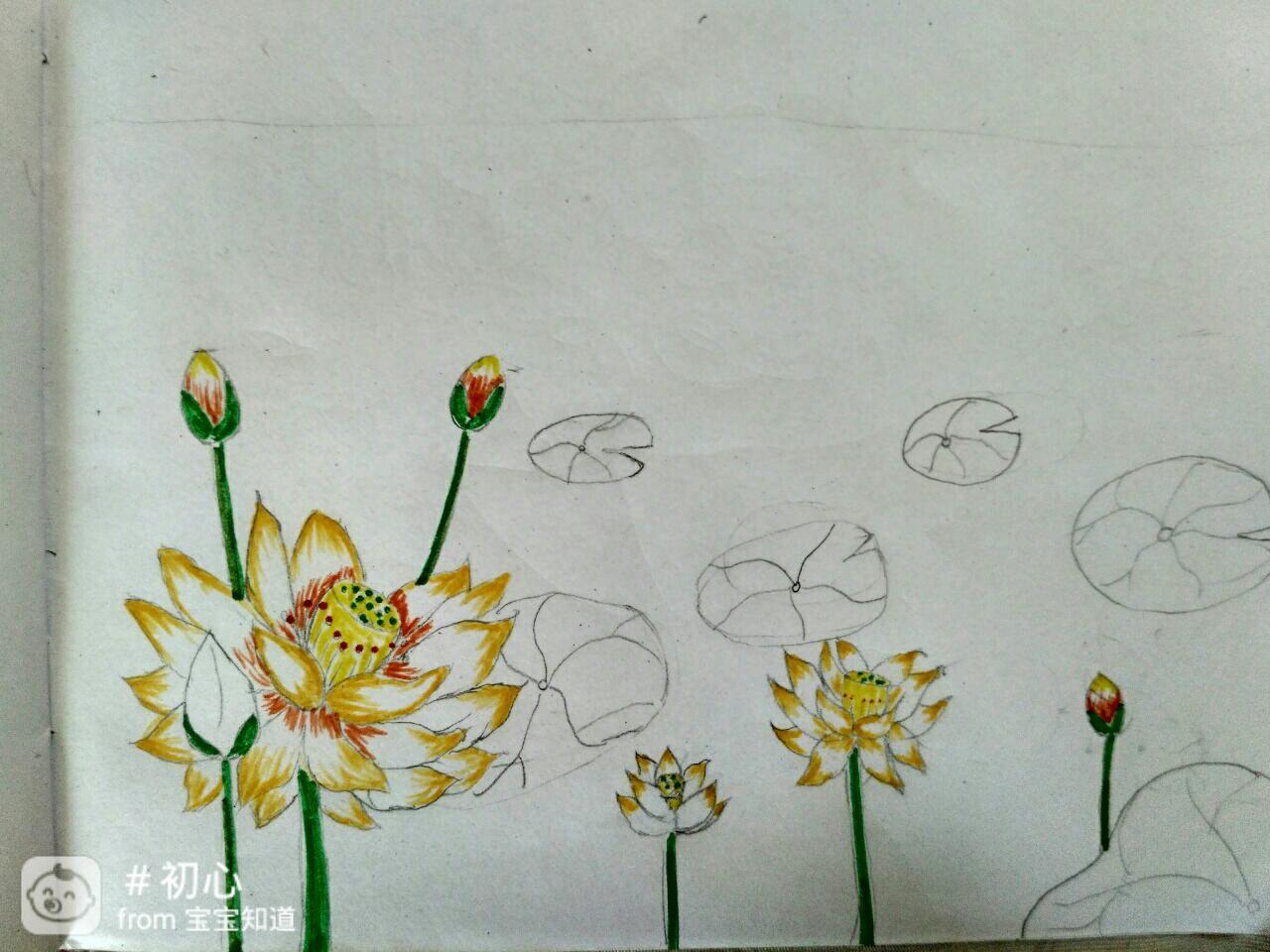 一池荷花完工了,开始上色,一般我们见到的荷花都是粉色和白色的,今天我涂的是黄色的,你有没有见过黄色的那