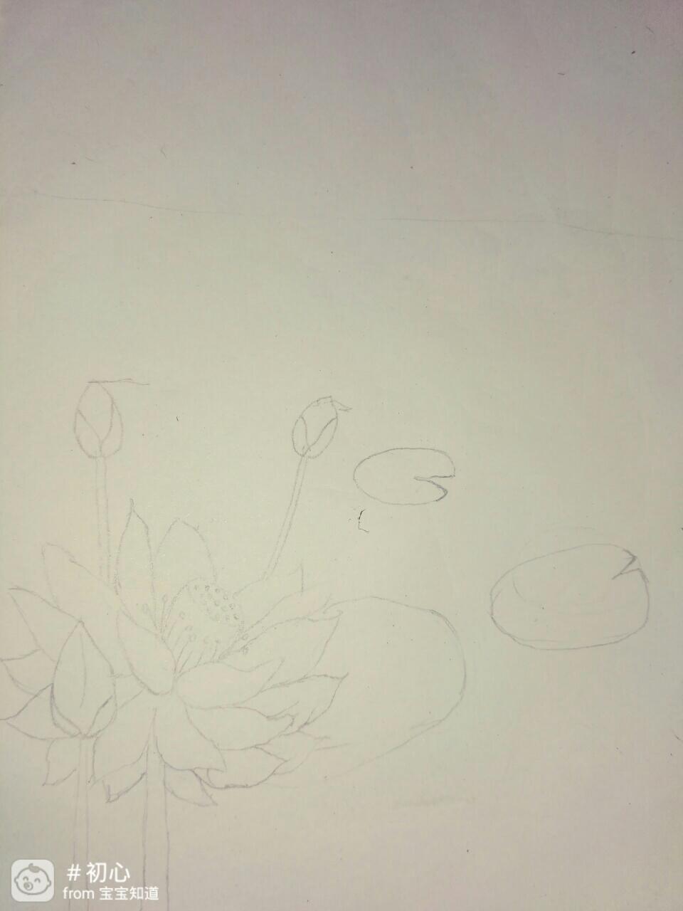 开始画第一朵荷花,先画花芯,劳电助然后一层一层,一片片画花瓣,第一朵荷花就这样完工了
