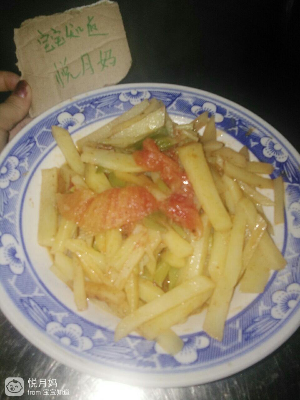 接着就把切好的西红柿倒入土豆中,继续翻炒