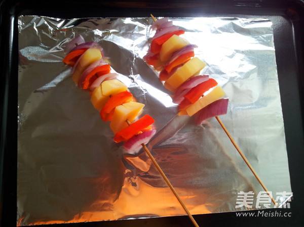 烹饪技巧 土豆亲它千万不能煮太熟了,不然串不上的。没有上下独立控温的烤箱要选择上搁狗怨下火。