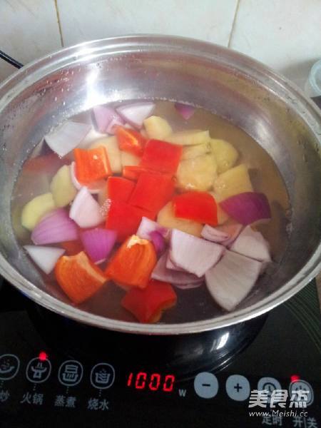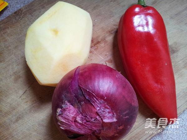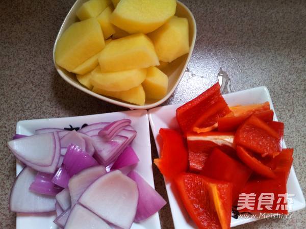 2. 全部洗净,切成差不多的大小。土豆切厚片。