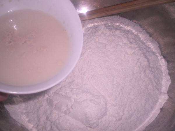 4. 将酵母用40度温水溶解,和入面中,