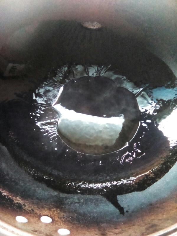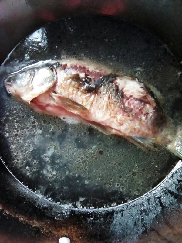接下来把锅洗净,把锅烧红,倒入少量油,〔放茶籽油更香〕我朋友告诉我鱼要少放油,多了不好吃。