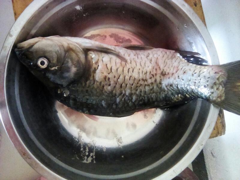 要准备的材料有:鲫鱼、油、盐、白醋,黄酒、胡椒粉、豆腐、小葱、大蒜、辣椒{下奶要少吃}本来要放姜忘买了。