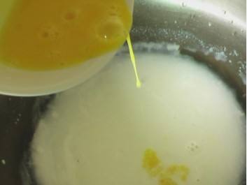 9. 蛋黄液件行搅匀徐徐倒径截减入