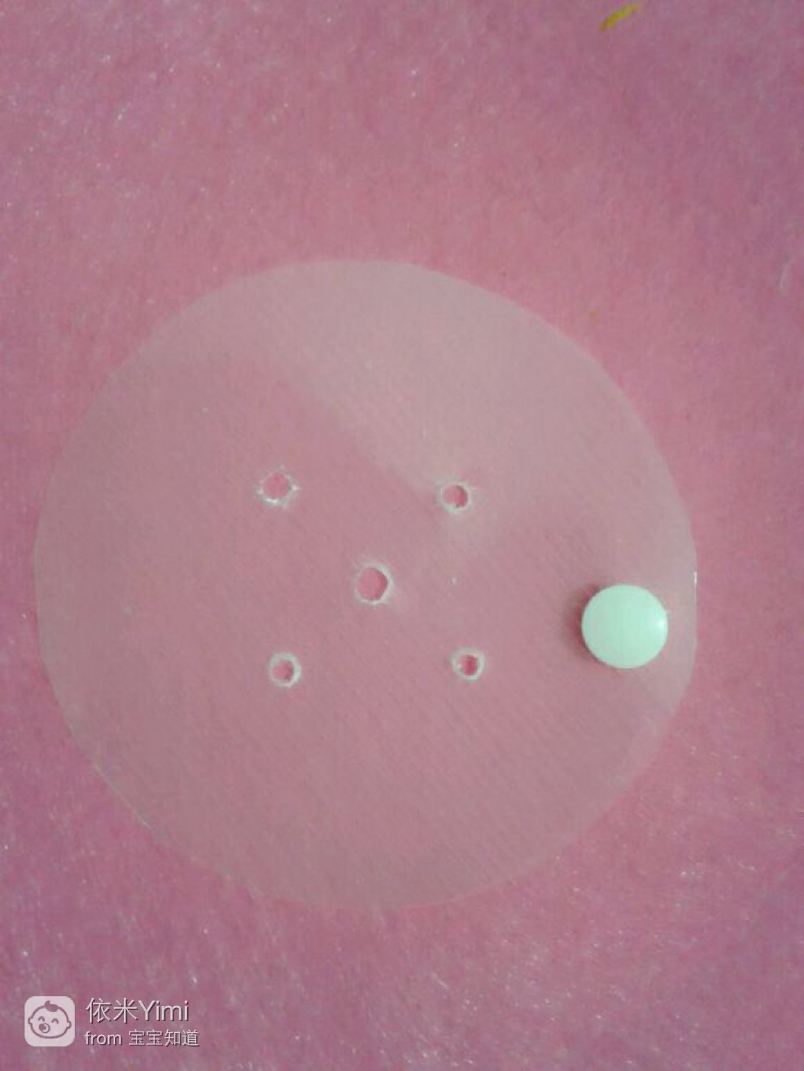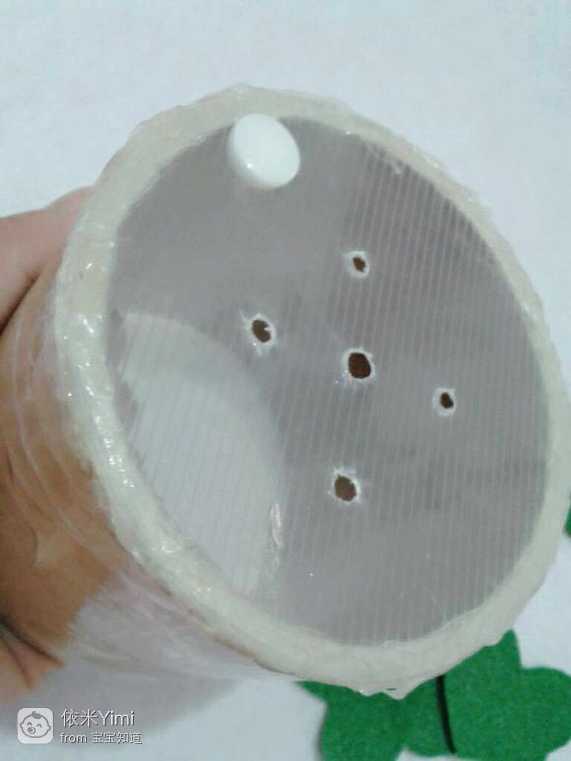 底部用塑料包装袋裁剪圆形,用剪刀弄几个小洞洞清法。