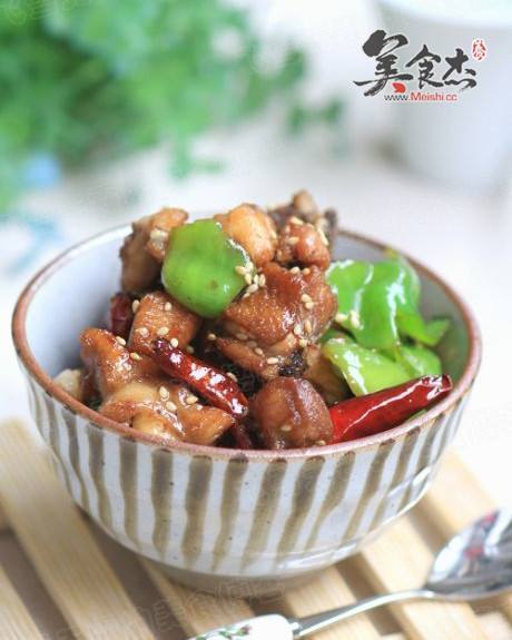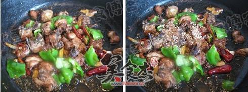 5. 加入各种调料和青椒块翻炒均匀