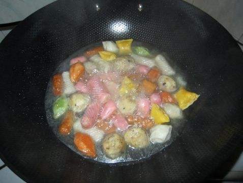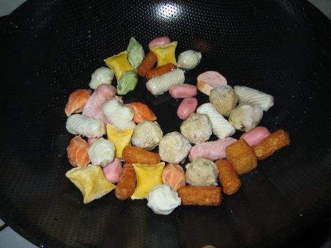 3. 热锅入油,将麻辣串放入,炒两分钟。