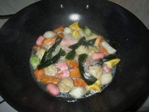 4. 加适量的水煮二十分钟。不要加太多的盐,因为串本身也是咸的。