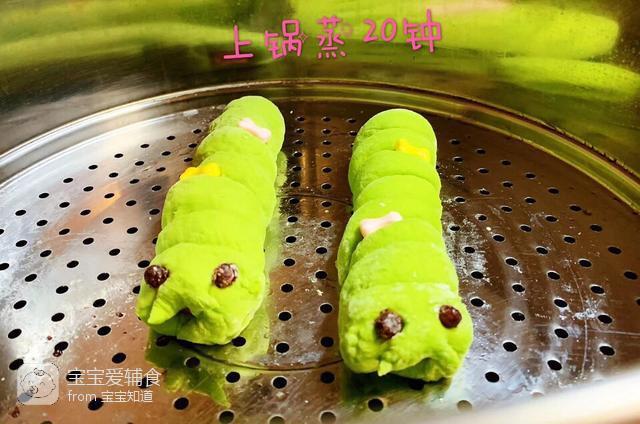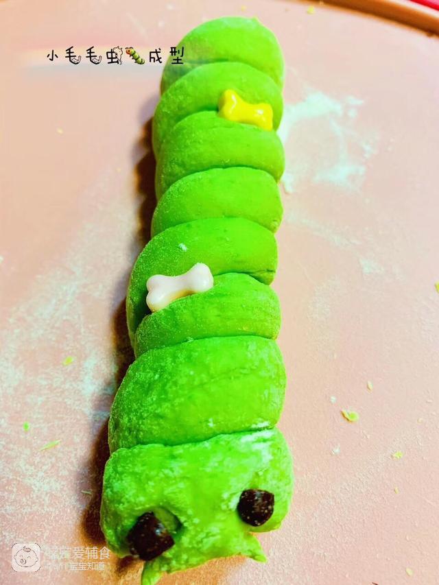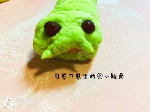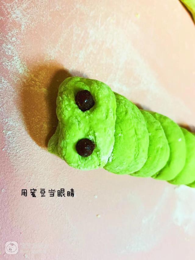 3、用蜜豆当做毛毛虫的眼睛