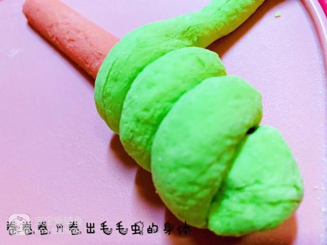 2、长条状的面卷在香肠上,卷出毛毛虫的形截且源状
