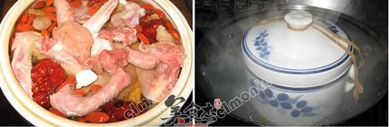 5. 把乡耻所有材料打入大炖盅,注入开水至8分满