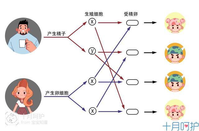 无论生男生女,妈妈都只能提供 X;爸爸则不同了,当爸爸提供X的时候,加上妈妈的X,就得到 XX,生女儿;当爸爸提供Y的时候,加上妈妈的X,就得 XY,生儿子。