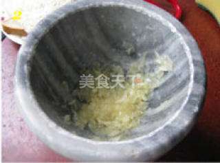 3 大蒜捣碎或者用磨蒜器压成蓉。