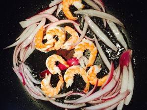 炒锅里放30克油,油热后,倒入洋葱爆香