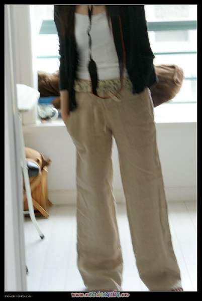 第一条是江南布衣的咸菜色皱皱裤,已经被我穿得洗得完全不皱了,这条狂便宜,在杭州旗舰店买的,折后才60。