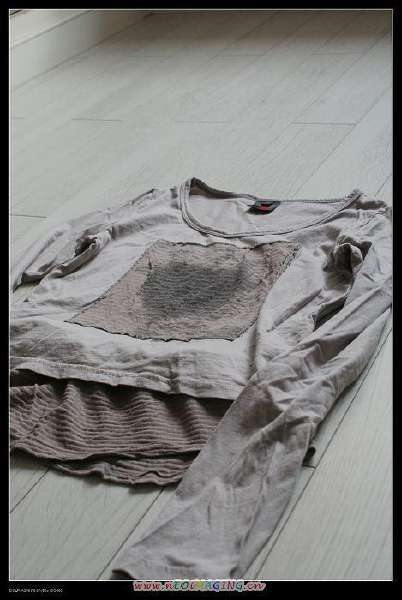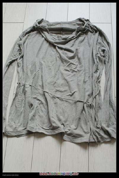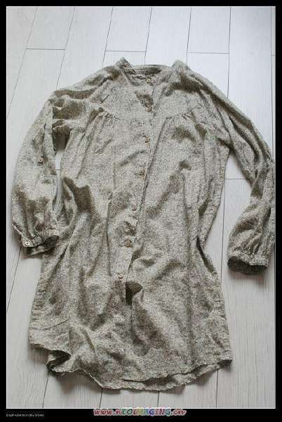 灰色的褂子,大领口,没腰身,还是破破烂烂的感觉。