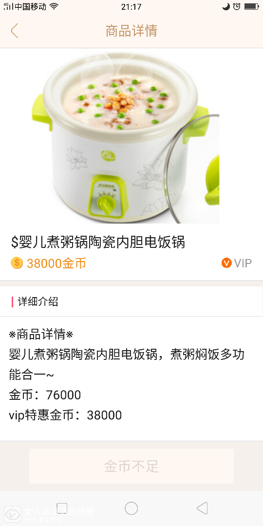 前厉称峡几天我看到V商城里有一个婴儿煮粥锅,看着还挺不错的,就想要给我妈兑换一个,可是看到金币那么便宜,可别不好用啊,如果不好用而且还很慢的话对换回来有什么意思,于是我在百度上查了一下,确实很慢,我也就没有兑换,前几天在QQ群里看到有人说这个煮粥锅太慢,需要两三个小时,但是熬出来的粥确实好喝,可是光好喝有什么用,煮粥太慢不就很涌以浪费电吗。