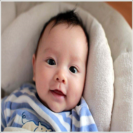 第二,宝宝的视觉。宝宝的世界和你看到的截然不同。最初的时候,宝宝的大脑是一张没有任何痕迹的“白纸”,外界的刺激会让大脑收到电信号,从而根据这些电信号得出外界的印象。宝宝非常热衷于探索这个未知的世界。到3个月底的时候,眼睛以及大脑视觉中枢的发育已经能让宝宝看清这个世界。宝宝原先只能感应到光和模糊形状,如今已能看清楚物体,并且喜欢抓他认为是自己的东西,对色彩的辨别力也是在这段时间形成的。在第一至第四周,宝宝能看清20~25厘米远的物体。这个距离正好能让他躺在你怀里吃奶,或是舒舒服服地休息时可以看清你的脸。除此之外,他还能辨认出颜色和形状的变化,并且能够大致感觉出哪些是人类的活动。宝宝大脑里有一处特别的区域,让他对其他人的脸尤其痴迷。他会慢慢但是彻底地把你的脸部研究个透,从你的发际、眼睛、眉毛到嘴唇,并会深深地印在脑海里,而且这也是未来12周中让他最为感兴趣的东西。接着他会模仿你的说话语气、口形以及眼神等。宝宝喜欢注意会动的物体,以及对比强烈或有影子的任何东西,或是黑色、白色、黄色、红色等有助于他视觉发育的东西。这些东西对宝宝的眼和脑是一种很好的练习,有助于他们区别不同事物。