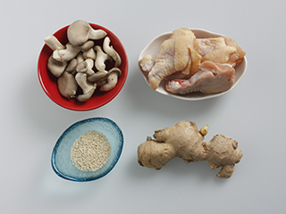 材料:翅根6只、鸡腿菇100克、姜一块、淀粉2汤勺、白芝麻少许、料酒2汤勺、老抽、豆瓣酱、糖各少许