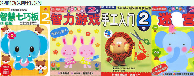 当时,4岁多的哥哥已经开始经常要涂涂画画了,快2岁的妹叹患妹看到也有样学样,但经常会给哥哥捣蛋,为了安抚或吸引妹妹的注意力,我就寻找比较经得起妹妹涂涂画画的书,偶然看到《多湖辉新头脑开发系列》,看评价不错,买了本该系列的2岁《智慧七巧板》,没想到,从此妹妹就深爱上了这套书,几乎做完了整套。该书不是单纯的数学和帖纸,它引导着不到2岁的妹妹,循序渐进的学会用剪刀(开始的小手工需要家长帮忙剪下,妹妹看到要求自己剪,我们就先让其帮剪直线,然后再会剪曲线,这样妹妹的动手能力训练得相当强悍。)画直线曲线和简单的逻辑推理。单纯的帖纸书,妹妹可能没多会儿就搞定一本,但这一本,内容就相当丰富,每次妹妹都是愉快的期盼的做《多湖辉系列》。后来几乎逢人就推荐这套,反馈都是相当好。