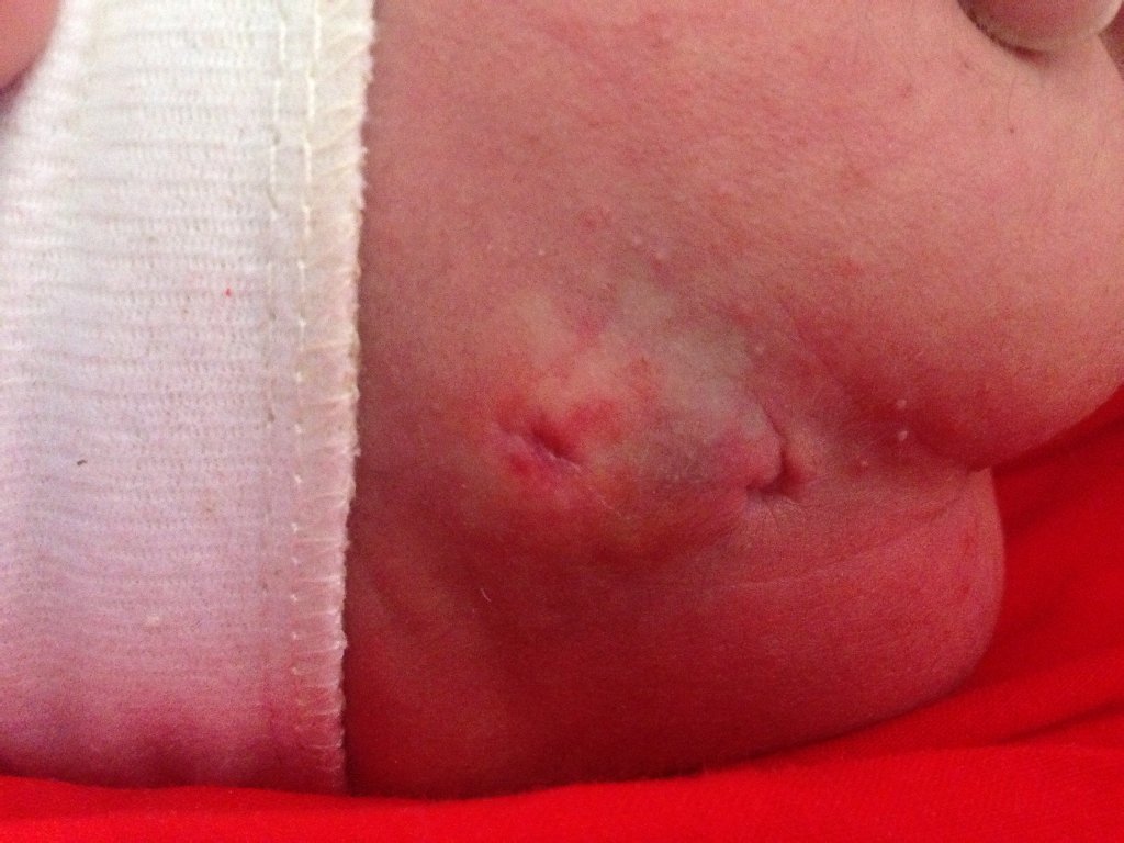 您好,您孩子这种情况是先天性发育异常的,从部位看可能是跟骶骨尾骨部位有瘘管,这种情况应该注意观察瘘管里面流出的是什么东西,如果是含有大便的水的话可能是跟直肠之间有瘘管,如果是清水的话可能跟蛛网膜下有瘘管,应该积极进行检查确定。