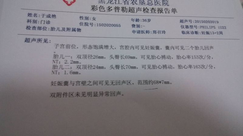 我怀孕13+2周 先兆流产卧床10天了 隔两天有褐色分泌物 死血色 双胎 胎儿正常 有暗区