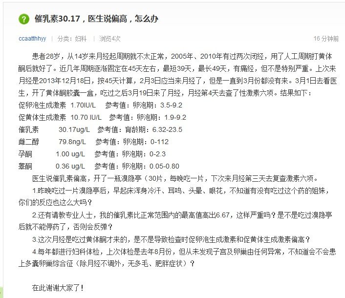 催乳素30.17怎么办 因为上传不了内容,具体的疑问在图片里 点击展开 匿名用户 2014-03-26 16:23 为您推荐: 其他回答 病情分析: 根据你的描述你的催乳素有增高。催乳素增高有可能卵巢功能有问题或垂体功能有问题。 指导意见: 卵巢功能有问题可以吃溴隐亭节。垂体功能有问题要手术治疗。建议你还要做头颅MRI检查。 匿名用户 2014-03-26 16:45 相关问题 啥是baby的生长曲线呢?具体是怎么的呢?有图妈可以上传图片来看一吓吗 请问各位宝妈、就是你们上传了做菜的那些图片、本来明明有4张为什么我有时候都看不到?[疑问]有时候只 请问大家怎么在提问中上传图片呢?