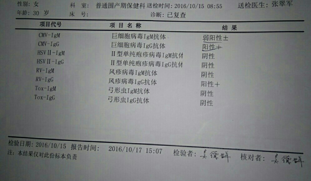 我老婆怀孕25周,前两天去做检查说有问题,谁能帮我看看这张化验单有什么问题,以后会对胎儿有什么影响 点击展开 孤际来风 2016-10-21 23:42 满意回答 已经怀孕25周,检查结果问题不大,不要担心了,定期产检就可以 cn#BakLGLBupk 2016-10-21 23:50 宝宝知道提示您:回答为网友贡献,仅供参考。 相关问题 我老婆怀孕十三周,现在需要做什么检查? 老婆怀孕十五周了可以同房了吗? 我老婆怀孕三个月 一直便秘 怎么办?会对胎儿有影响吗?如何改善?