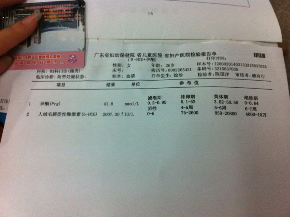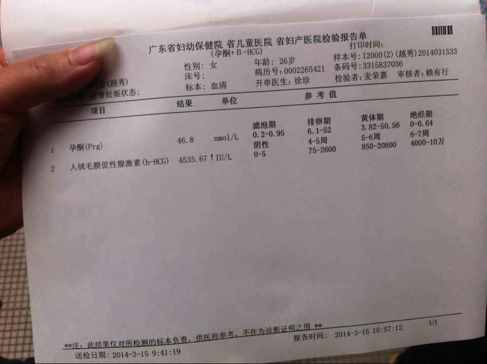 帮我看看HCG和孕酮正常吗 2.23-24排卵,末次月经是2月8日,3月5日早早孕水印,3月13日和3月15日去抽血,帮我看看化验结果好不好,谢谢。 点击展开 匿名用户 2014-03-17 16:38 为您推荐: 其他回答 病情分析: 您好!从您的检查结果来看孕酮和hcg都属于正常值范围,应该是正常的宫内孕。 指导意见: 建议在孕40天左右到医院做B超检查孕囊的发育情况。祝好运! 匿名用户 2014-03-17 16:48 相关问题 HCG和孕酮 谁帮我看看?这是怀孕还是没怀孕? 最近老是流褐色液体 孕酮是25 HCG98277 图片是B超 能帮我看看 怎么才能治流褐色血吗 流 谁能帮我看看HCG和孕酮的结果是否正常 12月28号来的月经,2月9号发现怀孕是弱阳 我的月经周