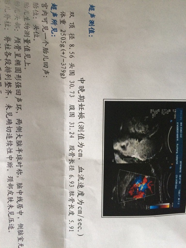 孕36周加1天,宝宝双顶径8.56 头围30.73 腹围31.24 股骨长6.93 肱骨5.91 孕36周加1天,宝宝双顶径8.56 头围30.73 腹围31.24 股骨长6.93 肱骨5.91 请问谁知道,宝宝有几斤重啊? 点击展开 150*****683_WdA5 2016-06-26 12:10 为您推荐: 其他回答 比较准确的。 cn#BQfukLpLkp 2016-06-27 06:16 必须让专业的产科测量 cn#BQfukLpLkp 2016-06-26 20:22 5.4 斤 炚睿妈咪 2016-06-26 13:13 祝宝宝健康 ?《》12345 2016-06-26 12:56 不知道。。。。 152*****875_ivST 2016-06-26 12:51 加载更多 相关问题 双顶径8 6股骨长5 6头围30 5孕周32周加3请问这正常吗 有没有懂得宝妈,我孕33周加3宝宝BPD80mm,担心宝宝偏小,正常数据是85 孕27周加做的B超,显示胎儿股骨短两周怎么办?胎儿打嗝是什么感觉吖?有时感觉宝宝在里面像吹泡泡一样
