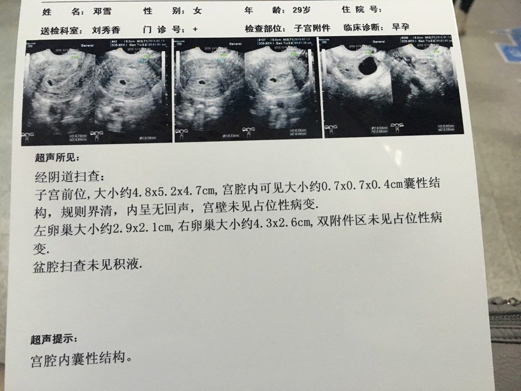 您好,我末次月经12月2号,现在六周了可能,13号bc(附图)hcg四天才翻,孕酮也低,医生说不排除宫外,现在保胎中,中西药一起吃的,今天有些褐色分泌物,上午做家务可能累的,会有影响么?什么时候起bc能看见胎芽胎心?