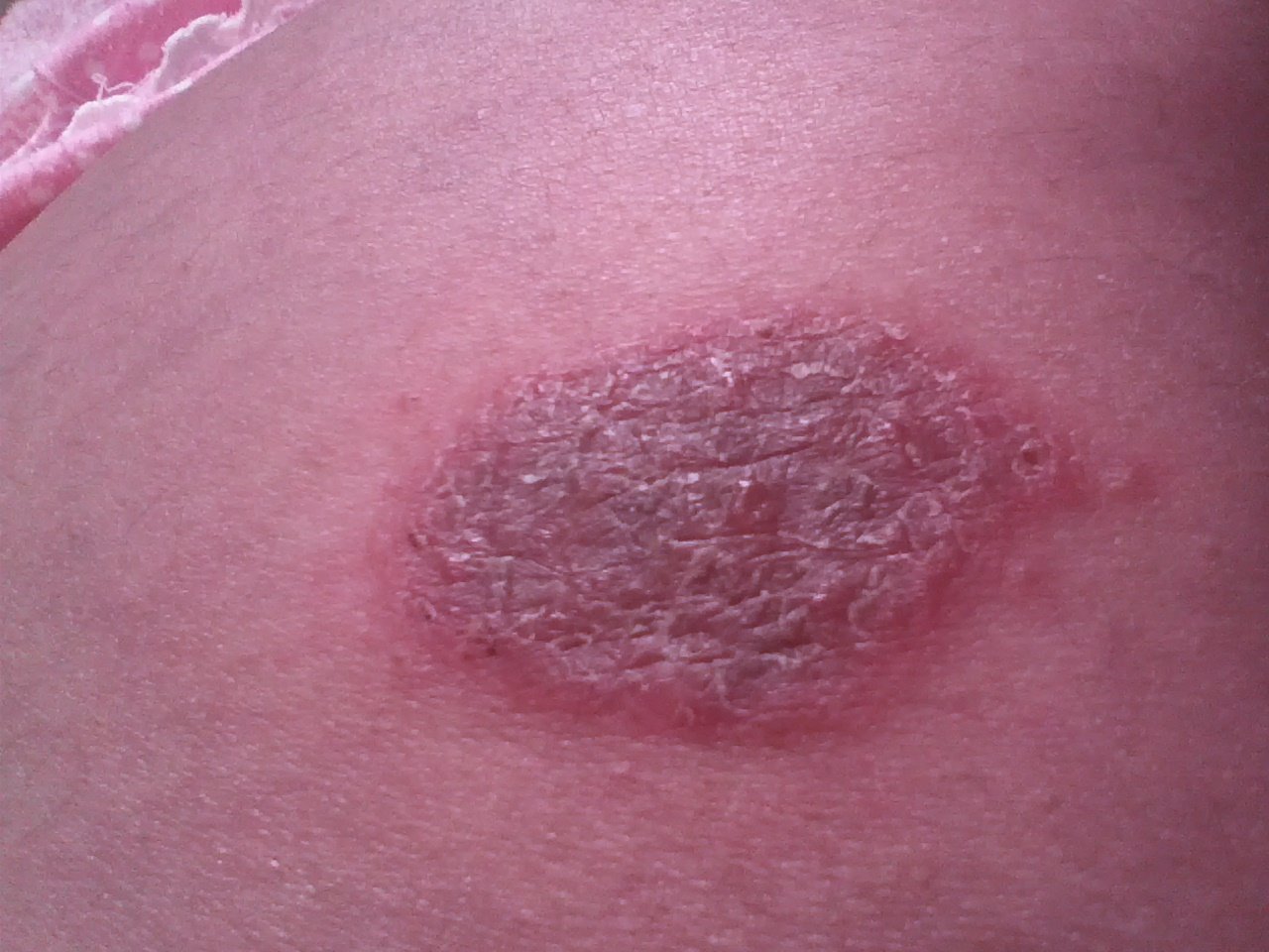 怀孕八个月了,几个月前肚子上长了一片东西,小手指甲大小,浅粉色,表面起皮,非常痒,有的时候会挠两下