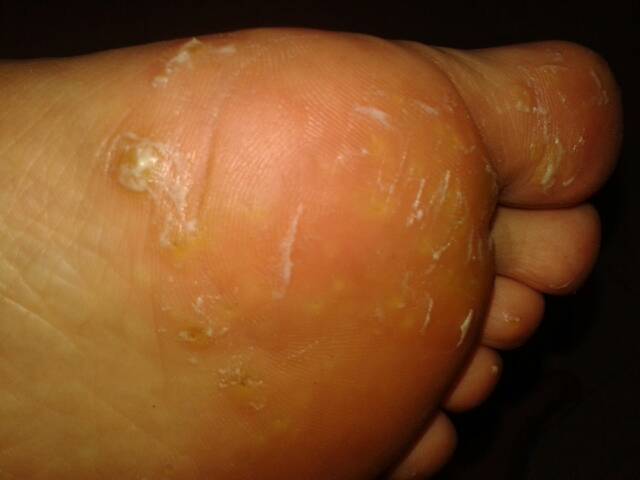 脚上长得密密麻麻的疙瘩,不知道是不是鸡眼!刚开始只有一个、一个月时间就不知不觉长了这么多!走路咯到